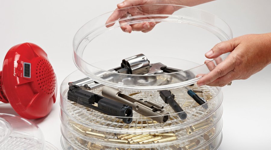 With the cleverly designed Digital Cases & Parts Dryer you can dry cleaned cases and gun parts on five trays at the same time. The range of equipment and tools for reloaders is rounded off by two measuring tools in the form of a standard micrometer for objects and bullets with a size of up to 1 in / 25.4 mm and a "Vernier Ball" micrometer, which is ideal for accurate measurement of case neck thicknesses.