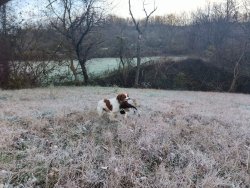 The day's hunting began in the forest and after hours of searching, opportunities to succeed in the densest woodcock habitats proved to be extremely scarce. The dogs indicated on some pastureland that a few passing animals must have been here before the night frost arrived, but we only managed to catch sight of one very elusive woodcock, which then twice moved far away from the dog in front without giving us the chance to take a shot. Clearly, the ice that had formed overnight had significantly contributed to the fact that the woodcocks our host had seen in the preceding days were now elsewhere.