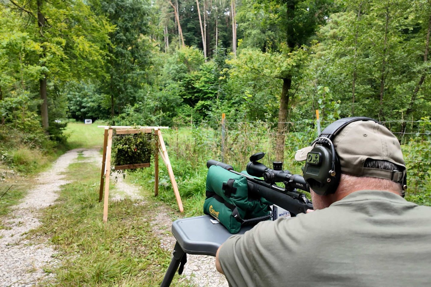 We shot from a bench rest with an Anschütz 1782 with GRS Bifrost stock in .30-06 Springfield, fitted with a Noblex scope, the NZ8 2.5-20x50 LR Inception. It should be noted that our results are of course only roughly transferable to a similar setup in terms of gun and especially caliber. Even a .308 Winchester load can behave differently here – even if it was loaded with the same bullet (identical bullet diameter and weight, same projectile type). The same also applies when using a different gun. There are simply too many internal and external ballistic factors at play here, so the results we have achieved can only serve as a guide and to clarify and sensitise people to this problem. Incidentally, the factory loads we used were the lead-free Nosler E-Tip with a bullet weight of 168 grains and the lead-containing Nosler Whitetail Country with 165-gr bullet. But now to the results.