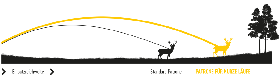 The trend for short-barreled is continuing in 2019, not least because of the increased use of silencers. Standard ammunition is usually designed for rifles with a barrel length of 600 mm. If these are fired from shorter barrels (420 mm to 550 mm), there is a significant loss of energy and velocity, a dazzling muzzle flash and a louder muzzle blast as well as a limited effectiveness of the bullet. If a silencer is used, standard ammunition will wear it out quicker. With RWS Short Rifle Ammunition, these disadvantages are overcome. Hence the slogan: Full performance from short barrels.