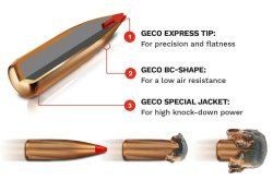 This also applies to the GECO EXPRESS, which, thanks to its BC value, enables a high velocity with little loss of speed and thus a flat trajectory.