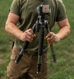 With a maximum height of 1.57 meters, the hunter can use the tripod standing up, while the minimum height of 170 mm allows for flat observation positions. When folded, it measures 560 mm and is therefore easy to transport. Despite its low weight, according to Minox the tripod can carry a maximum load of up to 8 kilograms – enough to keep the spotting scope stable and secure.