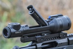 It’s easy to release the lock to open and raise the cover on the upper part of the riflescope and quickly replace the battery, placing it into the cradle integrated in the cover. The Talion XQ38 is powered with Pulsar’s proprietary APS5 Li-Ion rechargeable battery. One cell can power the Talion for up to 9 hours of continuous use. The way the battery replacement works reminds me of a Springfield 1888 "Trapdoor" musket lock.