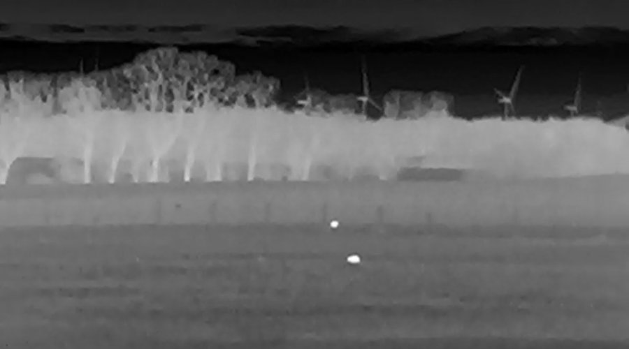 Reference images for image detail and image quality of the Cyclops D and Pro series: the fence in the background is 160 metres to 165 metres away, there are two hares in the foreground