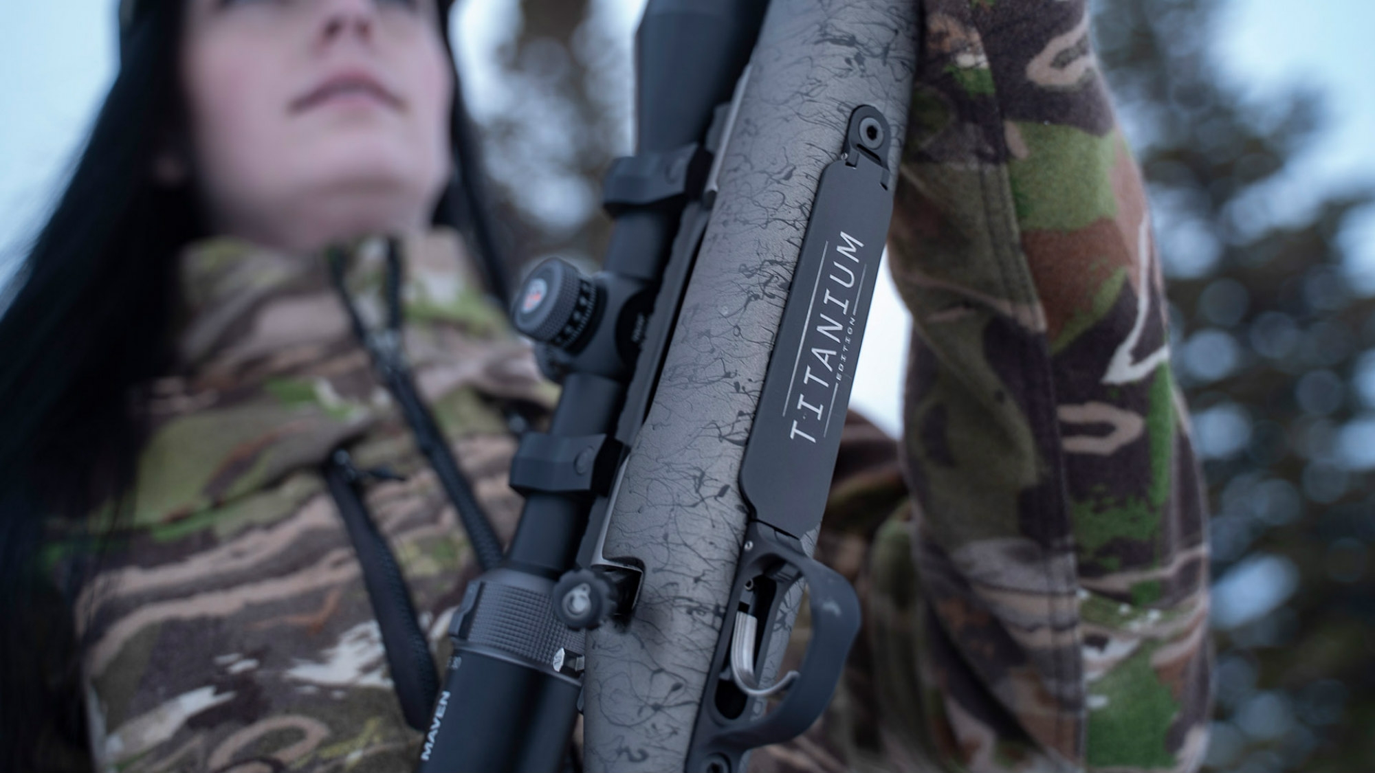 , a custom Titanium Edition floorplate and a carbon fiber composite sporter stock which is painted with a new metallic grey and black webbing look. The special edition of this compact hunting rifle is offered in .308 Winchester, 6.5 Creedmoor, 6.5 PRC, and .300 Winchester Magnum. It weighs in starting at 6.1 pounds (2.7 kg).