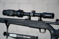 For our winter combo, we used GPO's driven hunt optic, the Spectra 1-6x24. The rifle and optic were used for driven and night hunting in combination with the Hikmicro Thunder TH35PC. Thanks to the short design consisting of scope and clip-on, the setup fit very well with the short, easy-to-handle CZ 600 Alpha. Only the mount had to be replaced at the beginning because the original mount was too low and we couldn't mount the TH35PC in the first step because due to the adapter from EP-Arms, the scope was touching the barrel. After that was done, we went night hunting and it was supposed to work "almost" fine the first time. However, we had to let a strong boar go, which caught wind of us and won the game that night. Maybe our friend also knew that two people on the high seat are simply louder and that's why it left the stage. Two nights later the same boar probably played a trick on us again, when it kept our hunter on his toes for two hours, repeatedly showing up briefly and then always pulling away when the reticle moved onto the vital organs. Well, that's hunting, too, and it's also part of a long-term test that you come home empty-handed.