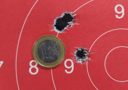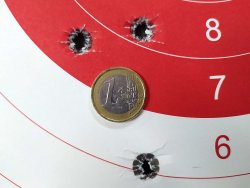 The results at both ranges, with zeroing done at 50 m in the indoor range just a few minutes before my test are at the very least remarkable, in my opinion: I mean, three rounds in just 1"/25 mm measured between the centers at 100 m and 1.9"/49 mm at 150 m, with certainly excellent hunting factory loads but sure as hell not Match Grade, and the GECO optic that just stops at 6x with a combat and LARGE FFP reticle! Really remarkable, well actually – absolutely impressive.