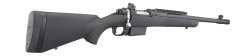 Front sight is a non-glare protected blade-type, coupled to an adjustable ghost ring rear aperture sight. The free-floating, cold hammer-forged 5-groove barrel is 16.50"/419 mm long, with a matte black finish – the same as the receiver. Bolt is stainless steel. The detachable box magazine with push-forward magazine release just forward of the trigger guard hold 5 rounds. Magazine well and trigger guard are glass-reinforced nylon. The controlled round feed extractor is a non-rotating, Mauser-type for positive case extraction, and features a fixed blade-type ejector.