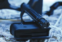 Thanks to the straight buttstock design, the recoil should be directed straight into the shooter's shoulder. This should prevent the rifle muzzle from climbing as high as possible. The hollow carbon fiber body should also take some of the recoil away from the shooter. The cheek rest can be adjusted using a push button. The maximum height is 2.5 centimetres. The cheek riser can be removed from the stock without tools and cleaned if necessary. The rear of the buttstock has so-called overload protection. In the event of a fall in rough terrain, it should not break off but be pushed back into the stock. The small QD mount for the Push & Go sling swivel is located in the buttstock. The pistol grip of the thumbhole stock can be gripped very well with both larger and smaller hands. The pistol grip is quite short and relatively steep. The ergonomics were already very comfortable when aiming and shooting from a sitting position on the shooting range (and also from a high seat), but here too the "aha experience" comes when you shoot the gun lying down. The quickly removable mini-QD mount is practical for shooting while lying down. Without the sling swivel and stud, the rifle sits even better on a rucksack, for example. If you prefer shooting with a bipod, you don't have to take the diversions via the sling swivel, but can click one of Spartan's bipods into the fore-end.