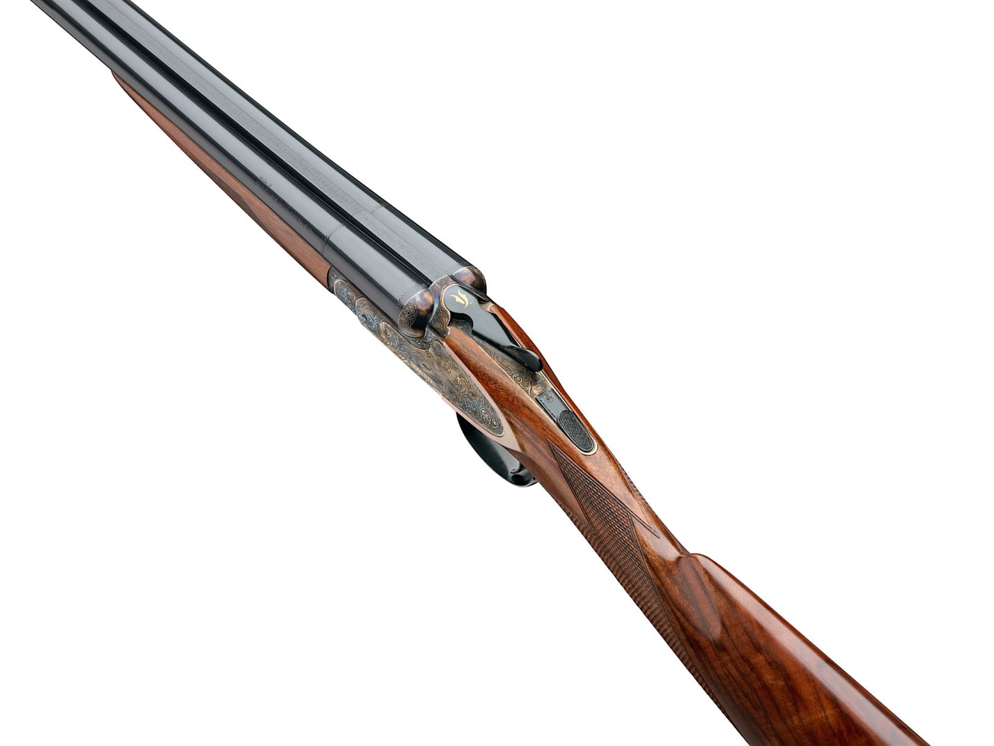 The Dea SLX is characterised by the receiver with long side plates whose surfaces are deep-laser engraved with three-dimensional floral motifs, with acanthus leaves that create an effect of light and shadow up to the receiver bottom, where we find a gold-inlaid partridge and the model's name. The enrgraved parts alternate with the ball fences, left partially smooth with a pleasant contrasting effect. The finish can be chosen between chrome-plating or color case hardening. The hunter can choose many of the construction and aesthetic details of the Dea SLX shotgun, making it his/her own gun, as the Fausti motto reminds us.