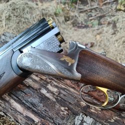 The lighting effects on the engraved nickel-plated surfaces of the receiver makes the Pathos XLight over-and-under a gun that undoubtedly stands out more than the same model with a blued solid steel receiver.