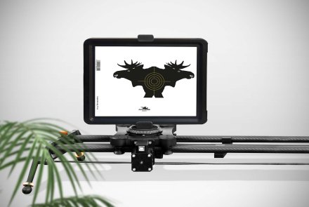 We now come to the target, which is really interesting. It has the shape and size of a small tablet (270 x 210 x 28mm) and allows you to display on it a wide variety of targets printed on special plastic sheets with the right color resolution for the laser, allowing you to try your hand at different shooting exercises in different sports categories, from Biathlon to the 25 m pistol, up to the running boar and moose and standard IPSC target. The targets are designed for use at a distance of 5 or 10 meters. Among the accessories that complete the set there is a 1.5 m track on which the wild boar or moose targets can move at adjustable speed. Also ingenious is the target lift that automatically lifts the target to the correct shooting position - standing, kneeling and prone – essential for training in three-position rifle shooting.