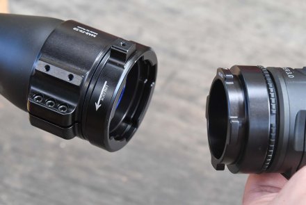The scope bell adapter has a ring that, when rotated by 90 degrees, locks into the corresponding coupling ring in an absolutely solid and reliable manner.