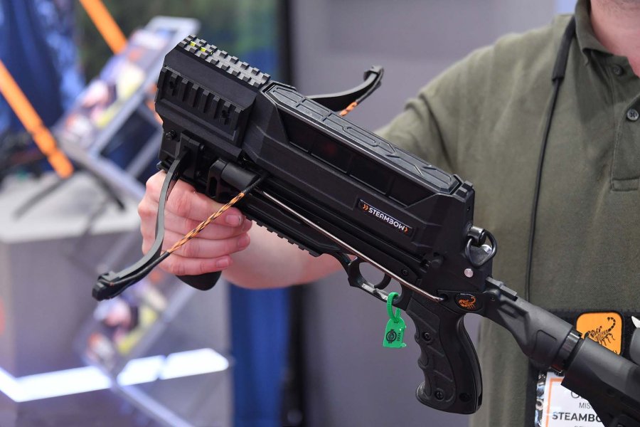Steambow has revolutionized the world of the modern sporting crossbow, first with the Stinger AR-6 model, equipped with a fixed magazine that allowed six arrows to be fired in quick succession, and now with the new M10 Upper that increases the capacity of the now interchangeable magazine to as many as ten arrows, nearly doubling its capacity.