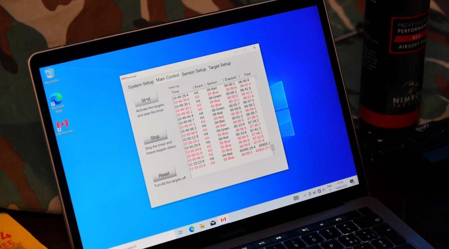 Inside the kit are three targets the size of a human torso, each with three independent reactive hit zones: head, chest and pelvic girdle area, each with a dedicated electronic device, powered by standard AAA batteries. The kit also includes a wireless controller, which allows the devices to be operated and reset, as well as a USB key for PC connection. The dedicated software can be downloaded from the Laser Ammo website.