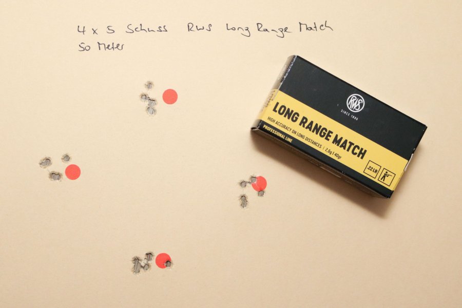Looking at the groupings, it can be said that the RWS Long Range Match, as a competition cartridge, offers even the more ambitious shooter more flexibility in terms of budget up to the 100-m mark compared to the Premium-line RWS R Plus Long Range. However, at longer distances the heavier bullet of the RWS R Plus Long Range proves to be more accurate. Therefore, if every millimeter of accuracy counts, the shooter should be prepared to dig a little deeper into their pockets if they want to rely on the highest possible accuracy from their cartridge in competition.