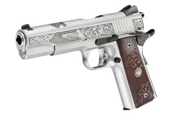 The Ruger SR1911 pistol in .45 ACP, which was made in an edition of 750 pieces and is intended for collectors, is particularly impressive, though. The pistol was introduced to the market by Ruger in 2011 to mark the 100th anniversary of the Colt Government in the guise of this legendary evergreen. The new Ruger SR1911 in a special limited edition for the 75th Ruger anniversary has a special "R75" serial number prefix. It features a rich, detailed laser engraving on the slide and hardwood grip panels with decorative scrollwork. MSRP in the U.S. is $1799.