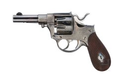 Lot 11401 was a Reichsrevolver M 83 Dreyse revolver in a compact version, i.e. with a barrel length of only 86 millimetres. This was a civilian version of the last revolver adopted by the German army, in this case chambered in .380 Short (instead of the military standard calibre, which was 10.6x25) and with a consistent serial number 539, which is also shown in abbreviated form on some of the screws that fasten the side plate and yoke to the frame.
