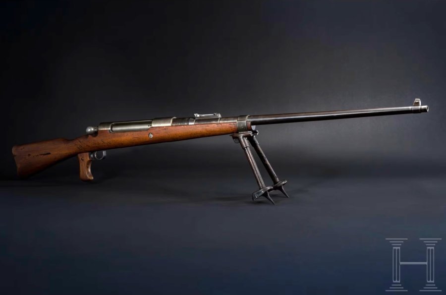 Lot 2632, which we already mentioned as a potential highlight, is a rare Mauser Tankgewehr M1918 anti-tank gun in 13x92R caliber, serial number 1290. Produced in almost 16,000 examples, it was the first weapon designed and built specifically to hit armored targets. It was chambered for the 13X92 R cartridge that used an armor-piercing bullet with hardened steel core weighing approximately 51.5 g, with an initial velocity of approximately 785 m/s. The weapon was used to hit the crew of enemy tanks by piercing their thin armor plates. The barrel is 98-cm long, with a slightly dull bore; minor corrosion in the muzzle area. The chamber area is marked with the Mauser banner above the date "1918" and has various imperial acceptance marks. The original barrel finish is 90%, and the breech end quite rubbed, otherwise in good condition with some patina and spotting. Complete with original tube-steel style bipod, in good condition with no corrosion. The overall length of this interesting anti-tank gun is 169 cm. The starting price was 10,500 euros and after a close challenge between buyers it was sold for 18,000 euros.