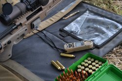 Since my goal for the day was the one-mile shot, I switched to the last stage at noon. Here the maximum distance of the shooting range was to be reached – 2240 meters. I completed this stage again with a Ritter & Stark rifle, this time in .338 Lapua Magnum caliber. In general, the .338 Lapua Magnum caliber, just like the 6.5 Creedmoor, is very well suited for extended long range distances. The cartridges I used were particularly high-quality and special, solid bullets, without lead: I used loadings from Solid Solution Designs, which are also used by the military and law enforcement agencies. Using a Kestrel wind meter, I was able to make all the important adjustments to the scope and thus start directly at 1675 meters with this rifle, even without previously collected D.O.P.E. data.
