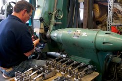 Dietmar Krüger: "In the brushed bluing process, the polished, degreased barrels are evenly and repeatedly brushed with the stain, which consists of ferric chloride, copper sulfate and alcohol. Usually a hand sponge is used for this purpose. This requires some practice so that it is even in all places and there is no dripping. Then it must dry for 10 to 12 hours, but the process can also be shortened by half in time by means of a steam chamber. After boiling in pure water, the barrels dry again by their own heat.” To ensure that the passion can also be measured and put into usable figures, there is an employee who is exclusively responsible for quality assurance (QA). In his separate little workshop, he takes random samples of the materials supplied to see whether they meet the requirements or have defects in advance. He checks the machinery to see if the adjustments are correct, supervises the final inspection and, of course, tests individual guns in theory and practice before they leave the factory. An important institution that does not exist in this professional form at all manufacturers.