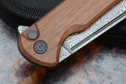 The handle of the version photographed is made of Bubinga wood, also known as African Rosewood, a fine wood from central Africa, characterized by its light chocolate color with darker grain and good stress resistance. For those who prefer more high-tech materials, the Chevalier is available with dark green Micarta or black G10 handles.