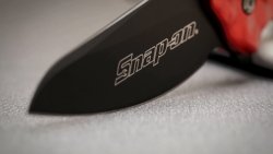 The Snap-On Ken Onion Wrinkle Knife is made from high carbon steel that provides superior cutting performance and incredible edge retention and also has a modified hollow ground drop point blade which reduces resistance when cutting. The cold forged anodized aluminum handle is durable, lightweight and built to withstand the abuse of a shop environment. The liner lock design with recessed liners and barrel spacers create a knife that is safe, strong and thin but still easy to close and clean.