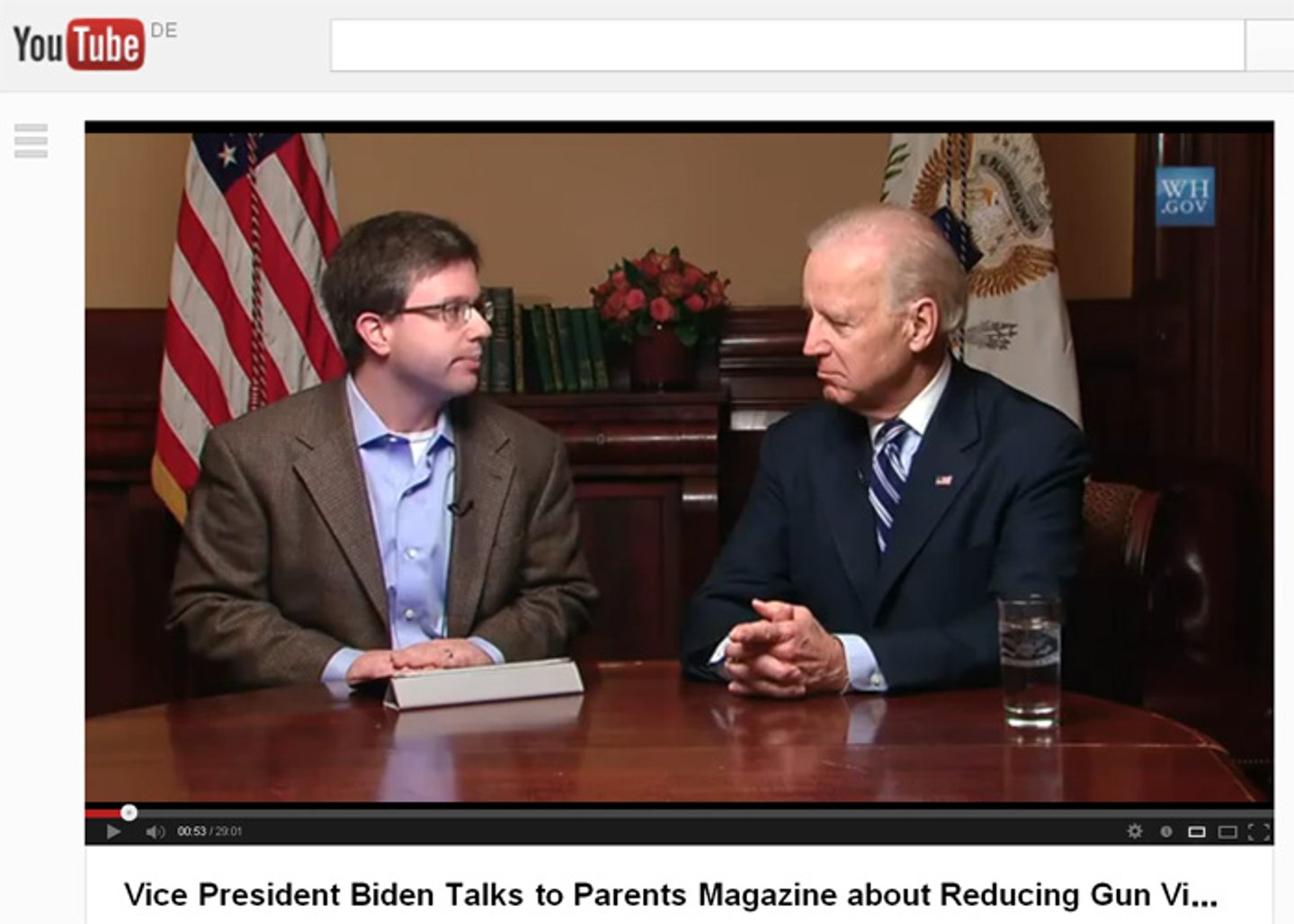 The importance of brutal games and video. At the end of the interview a Parents reader asks what role brutal computer games, videos and TV had in gun crimes. An actual news was stating that this fact had been given with the Newtown shooter. Biden confirms that there had been a study saying so but that there was no hard data.
