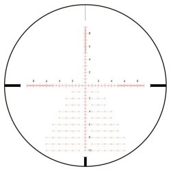 All the little bars, strokes, marks and numbers of the PRS reticle (see illustration) can only be seen well from about 12x magnification. For eye-friendly usability, it would be better to set it to at least 15x magnification so that you can really get a good look at the little helpers on the reticle. So if you don't really want to use the scope for quick sizing and aiming like you do in Precision Rifle Series style competitions, you're probably better off with the clearer crosshairs of the Latitude Benchrest or one of the F-Class models.