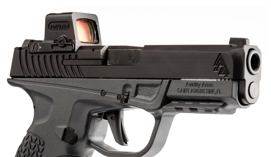 The frame features safety "index points" on both sides where you can rest your index finger when not operating the trigger, and a claw feature on the magazine baseplate makes the magazine easier to remove. The magazine is 1911-style with a redesigned follower to provide maximum reliability and a polymer pad flush with the grip. The width of the Avidity PD10 is exactly one inch, or 2.54 mm, which is certainly good for those who choose to carry it even concealed. The weight with empty magazine is 526 grams. The company states with a hint of pride that the Avidity PD10 is 100 percent made in the USA and has no metal parts made by investment casting.
