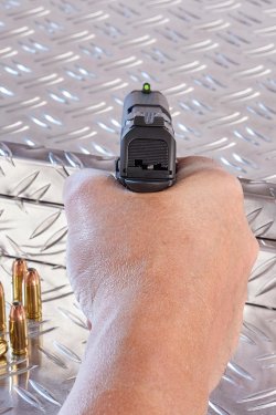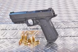 Equipment: all-metal pistol, optic-ready, side driftable sights, front sight with green fiber optic insert. Two spare magazines, cable lock, plastic case. |