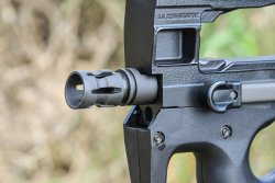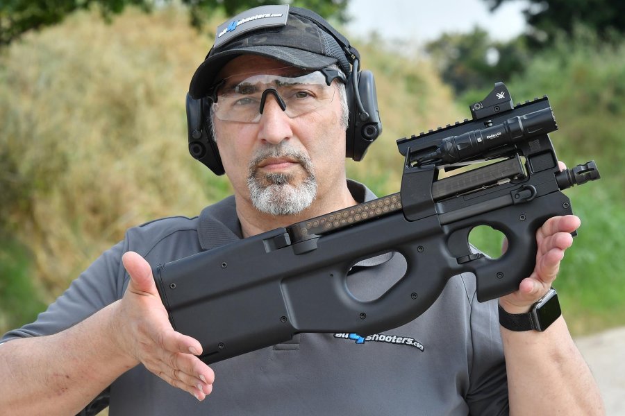 And the PDW par excellence, since its official introduction to the market in 1990 along with the Five-seveN pistol and the 5.7x28mm cartridge, is FN Herstal's P90. I had the opportunity to try it in the military selective-fire version on a couple of occasions many years ago, and never in the semi-automatic PS-90 version introduced in 2005 on the US market and featuring a rather ungainly 16.5" barrel with flash hider.