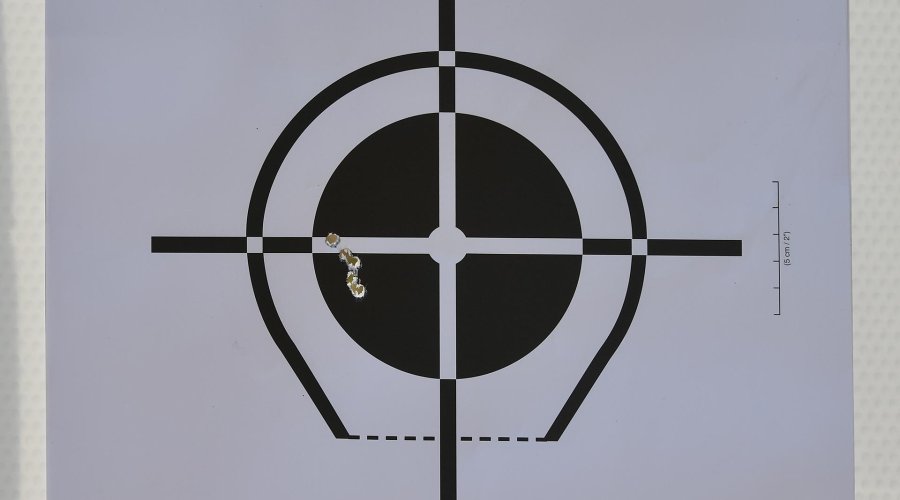 After inserting the magazine you have to pull back the bolt and let it slam home to chamber a round. Once the magazine is empty, the bolt remains in the closed position. Chamber check is easy to perform, however, and the chamber can be easily seen with the magazine removed. The sighting system, though basic, is functional: elevation can be adjusted, and for windage adjustment you have to move the entire Picatinny rail block with a special spanner. the MK-90P I tested had a Vortex mini red dot mounted on the top rail.