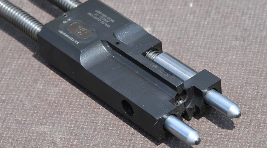 The MK-90P can be stripped down with impressive simplicity and speed. When the gun is unloaded, remove the magazine and cock the hammer, otherwise the bolt assembly can't be removed, and at this point the upper receiver can be separated from the polymer chassis by pressing a button placed under the magazine and pulling the entire upper assembly to the front, including the barrel and receiver. The barrel is floating, features both longitudinal and axial play, and is held in place by a spring and torque tightened by the flash hider, and therefore can't be removed except for extraordinary cleaning or repairs. Tilting the chassis forward the bolt assembly comes out together with the guide rods and recoil springs. This is a truly interesting piece in terms of geometry and solutions, among which the spring-loaded weight sliding along the left rod which is a stabiliser that makes the gun more controllable in full auto. At this point, push the buttstock recoil pad upwards and the entire trigger group can be removed by pressing a spring-loaded button. The whole thing is colored with a sense of déjà vu, and AUG owners will share this feeling just by looking at the trigger group. Follow in reverse order to reassemble the gun.
