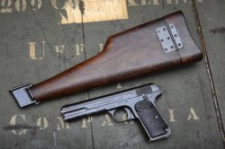 The Browning 1903 helped shape the very concept of semi-automatic pistol. The brainchild of John Moses Browning's extraordinary design skills, it had a rather long gestation period, but was certainly worth it. Simple and reliable (it was made up of only 27 parts), it already had everything that today is considered essential in a handgun, and even something more. Admittedly, the cartridge it fired was weak and the magazine had low capacity, but this did not detract from its status as a progenitor. The stocked version adds a touch of curiosity to a remarkable and, in this particular case, very well preserved conversation piece.