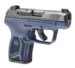 A Liberty Blue frame with red/white splatter finish, together with the "Made in the 250th Year of American Liberty" engraving on the slide, characterizes the special-edition LCP MAX pistol in .380 Auto, priced at $399.