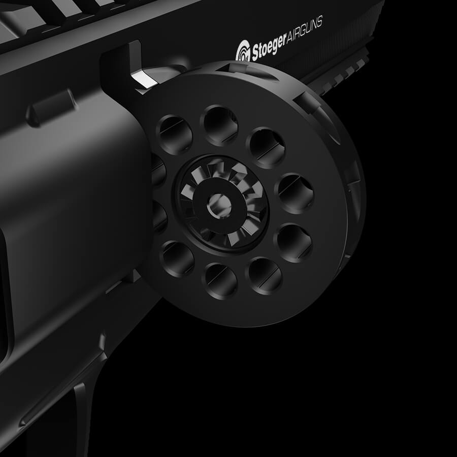 Well suited for casual training sessions, including indoor practice where permitted, all revolvers in the XRD series are powered by standard 12-g CO2 cartridges housed inside the grip. Muzzle energy is approximately 4.3 joules in 5.5 mm and 3.1 joules in 4.5 mm, offering a balanced mix of controllability and shooting fun. The removable “cylinder”/ammo mag holds 10 rounds in both calibers, supporting fast reloads and uninterrupted range time.
