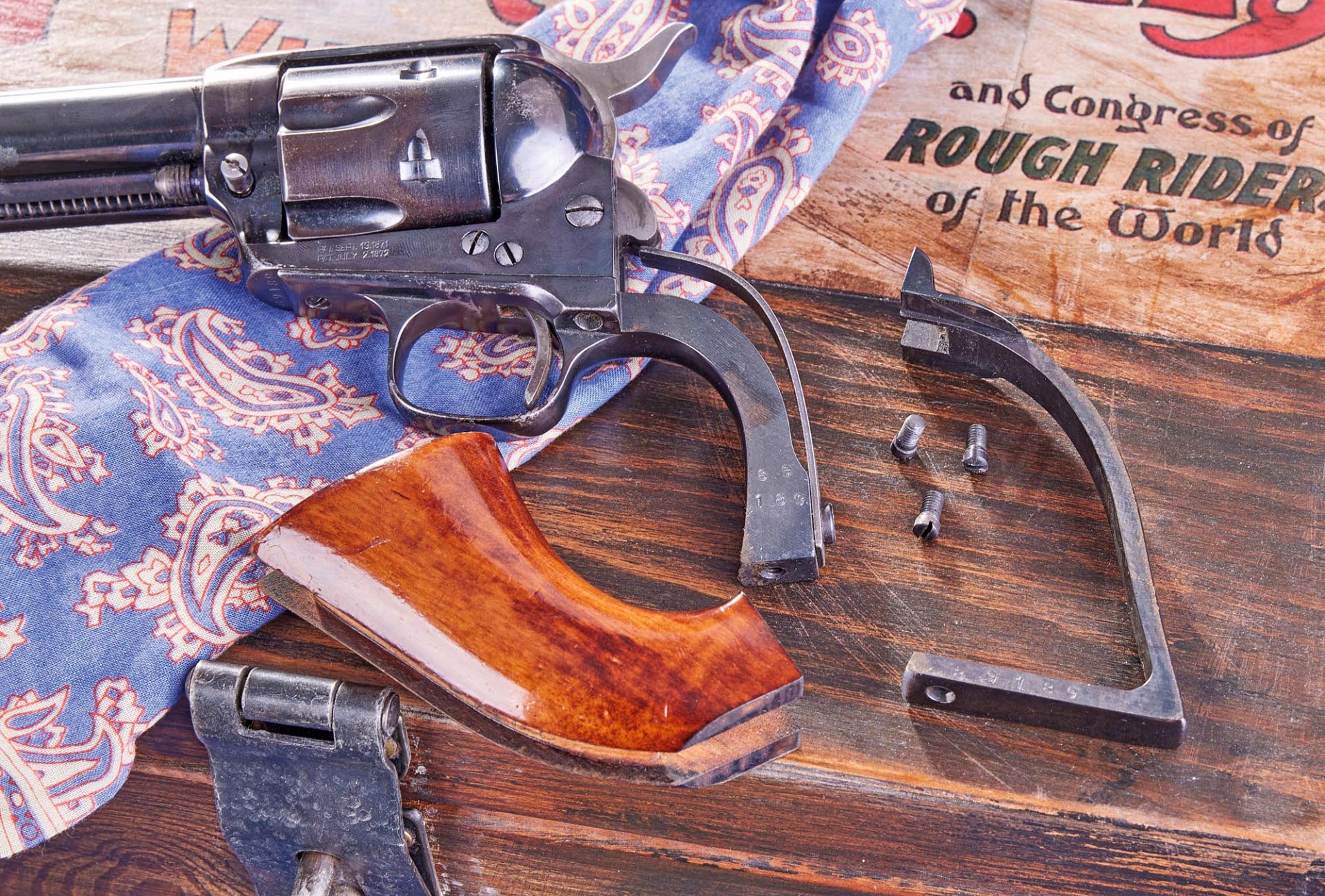 Anyone comparing a revolver like the "Remington Improved Army Model," aka "Remington No. 3 Army," or "Remington Single Action Army" with a Colt SAA will find similarities: both are six-shotsingle-action revolvers with curved backstraps and solid, closed frames that hold the screwed-in barrels. The cylinders are loaded chamber by chamber via a side loading gate and unloaded using an ejector attached lengthwise to the barrel. But that's where the similarities end. The Colt design developed by engineer William Mason (1837-1913) is based on a three-part construction consisting of the frame, backstrap, and grip front strap/trigger guard. It takes a whopping six screws to join all of these components together. If, instead of the original one-piece wooden grip, two panels (made of hard rubber, bone or — horrible to say — mother-of-pearl) are fitted, then a seventh screw is added in the grip frame area. Sooner or later, they will all come loose during use.