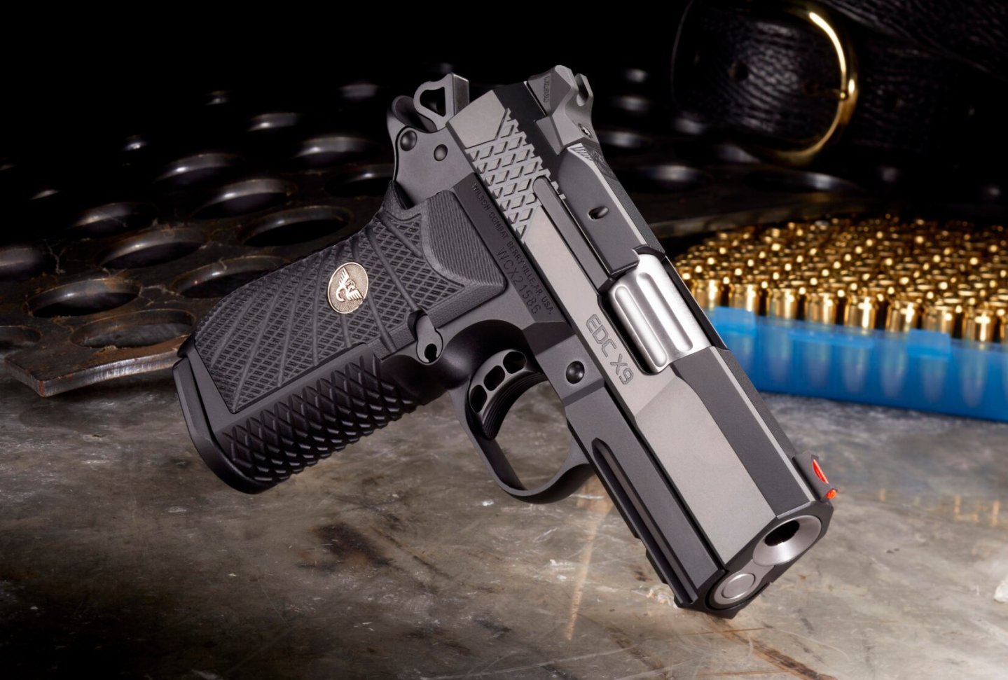 Frame: the EDC X9 3.25” is built on a T6-7075 aluminum X-frame with a grip that is smaller in circumference than a standard single-stack 1911. Designed by Bill Wilson and Wilson Combat engineers, the screwless X-frame design uses hammer spring tension to keep the aggressive traction Wilson/VZ G-10 starburst pattern grips in place. Which also means that the gun can be fully disassembled with a single punch, since there are no screws at all. On the front and back straps the Wilson Combat X-Tac tread pattern also provides a safe and comfortable grip, while the ergonomic design in conjunction with an enlarged trigger guard window and your choice of radiused trigger pad length fits all hand sizes comfortably, improving recoil control.