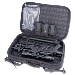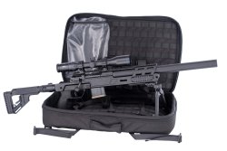 The stock of the B&T SPR300 PRO can be folded on the left side, is not adjustable in length, but is equipped with a height-adjustable cheek rest. Thanks to an adapter it is possible to mount any other stock that is also length-adjustable. The standard pistol grip is also easily interchangeable with other aftermarket products compatible with AR-15/M4 rifles. The fore-end is equipped with an M-Lok interface and has two short accessory rails on the sides. The bipod mount is present, as the rifle comes standard with it. The equipment is completed by a hard case and a padded bag.