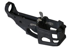 The Quattro-15 lower receiver assembly features a windowed magazine well for weight reduction and is full mil-spec parts compatible with the exception of the mag release button and the bolt catch. Both magazine release and bolt catch/release come preinstalled and are ambidextrous. Finish is type III hard coat anodize. The receiver assembly is priced at $249.99.