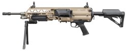 As is already known, Belgian defence contractor FN Herstal, for example, will be presenting a new version of the legendary Minimi machine gun. The company plays a leading role in this field and recently surprised experts with the ultra-lightweight "Evolys" machine gun chambered in 5.56x45mm or 7.62x51mm (see more on this below). The world's most popular light machine gun Minimi in 5.56x45 and 7.62x51mm NATO is now being offered with a modified feed cover with an extended optics mounting rail in response to user requests, allowing it to be fitted with several optics in line. For example, it is now possible to mount a red dot sight with magnifier, or a day optic with a night vision optic, which can be a decisive advantage in combat conditions (day and night combat capability). The standard adjustable rear iron sight has been replaced by a flip-up non-adjustable rear sight for back-up use. When open, the cover is held in place by a retaining latch to counter for the weight of additional optics during loading, unloading and any clearing actions.