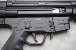 Other differences in detail include the type and number of grooves around the flash hider and the markings on the safety or fire selector and safety lever. The manufacturer apparently uses the same injection mold for the AEG version as for the S-AEG model, which also has A, F and S positions, but only allows single shots in both the A and F positions. The 9mm version is known to only have the positions "S" for safe and "F" for ready to fire. The same design is used for the collapsible stock, which can actually be locked in four positions.
