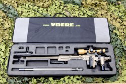 repeating rifle with fluted, changeable match barrels (.408 CT: equipped as standard with progressive twist), muzzle breaks, pistol grip, Harris bipod, hand guard with Picatinny rails, pressure point trigger, adjustable aluminium butt stock, one-piece Voere block mount, steel panel magazines.