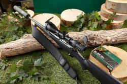Pour le tir à la distance de 100 m, 5 lots de munitions de différents poids étaient à disposition. Le projectile le plus léger provenait de Hornady avec 150 grains, le plus lourd de la maison RWS avec 180 grains. Comme le Black Impact est déjà conçu pour fonctionner avec un silencieux, le silencieux Mauser d'A-Tec a été monté sur le filetage. La réduction sonore de ce silencieux (417 euros) avoisine les 31 dB. Avec un poids de 370 g, ce silencieux est assez léger. Il mesure 230mm pour un diamètre de 48mm. Comme il est manchonné, le Black Impact ne s'est allongé que de 130mm. L'optique de visée utilisée est une Steiner Ranger BC 3-12x56. Son poids est légèrement supérieur à 700 g, ce qui augmente le poids de l'arme d'à peine 1 kg. Les testeurs ont tiré avec l'arme en position assise et appuyée. Il s'est avéré que tous les chargements produisaient un cercle de dispersion satisfaisant.
