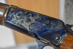 Le Pedersoli Droptine Classic en calibre 30-30 Winchester a été créé pour répondre aux demandes des utilisateurs plus traditionnels et se caractérise par des matériaux nobles et une finition "old school". La crosse en noyer poncé huilé est finement ajustée sur une carcasse polie à la main qui, grâce à un jaspage, est du plus bel effet. Le canon PMG (Pedersoli Match Grade) mesure 483 millimètres (19 pouces) et reprend à la fois le filetage de la bouche et la préparation pour les rails Picatinny de la variante moderne. Le canon est bronzé brillant est équipé d'une hausse classique type Buckhorn et d'un guidon en laiton. Le canon a 6 rayures d'un pas de 1:12".