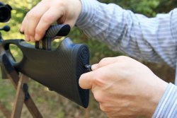 On sourit en manipulant la culasse. Elle glisse tout simplement, il n'y a ni grattement, ni accrochage, ni ronronnement. Aucun bruit supplémentaire ne vient perturber l'oreille, juste un flottement velouté. Ses six tenons de fermeture se verrouillent directement dans le canon. Le magasin en plastique à une colonne peut être chargé de trois cartouches. Le remplissage se fait sans problème et la répétition des cartouches dans le système se fait sans problème et sans accroc. On cherche en vain un quadrillage sur la poignée pistolet et sur la crosse avant. En raison de la surface en fibre de carbone, toute la crosse est lisse.