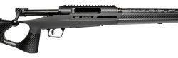 La poignée de culasse est filetée 5/16x24, elle se termine par une boule de culasse en fibre de carbone. La carabine est livrée d'usine avec un frein de bouche Omniport déjà installé. Le chargeur est détachable.