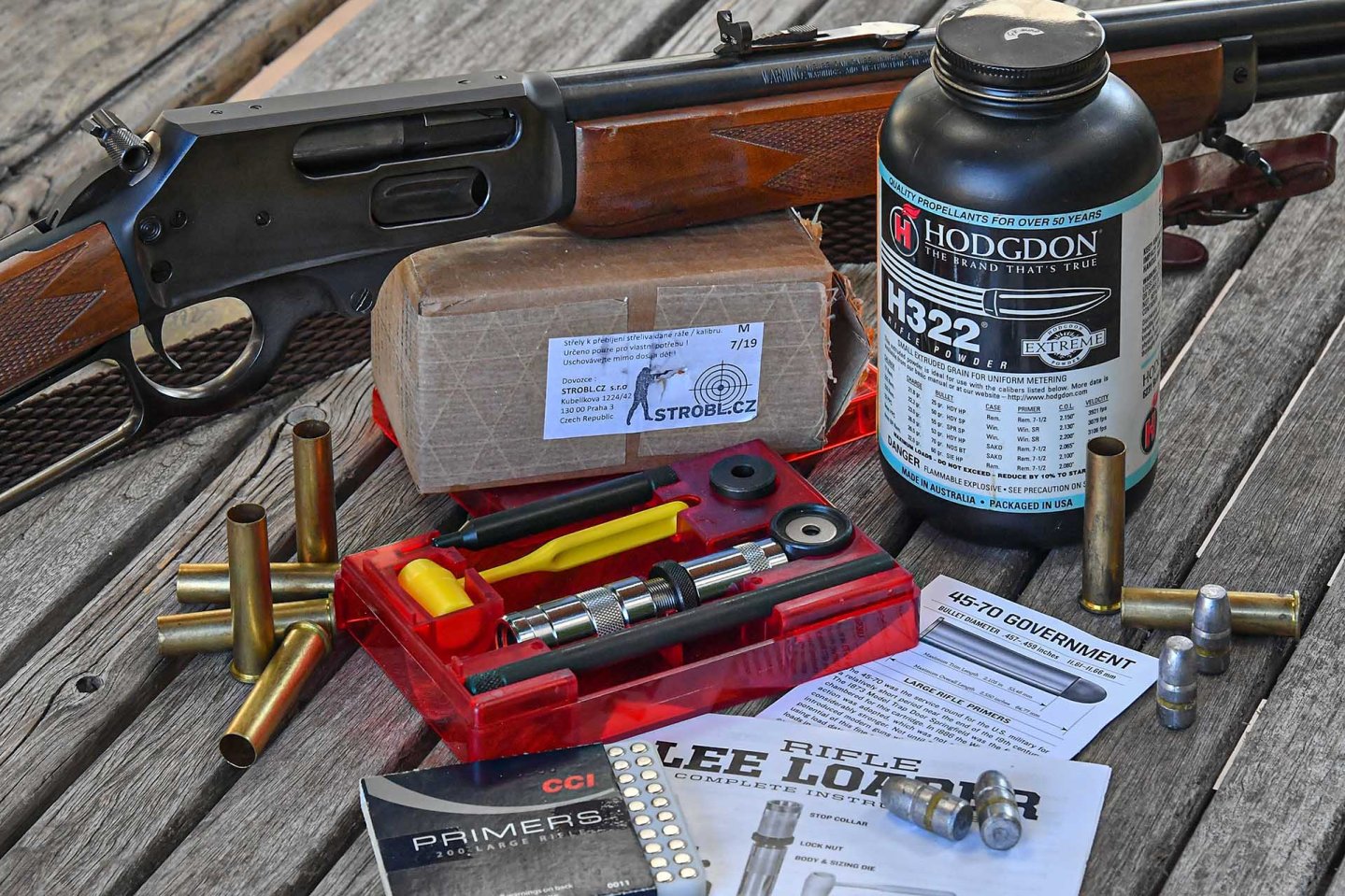 En fait, pour le prouver, je me suis rendu à mon stand de tir local avec une boîte de munitions de chasse Hornady Leverevolution, un petit flacon de poudre (Hodgdon H322), quelques balles Hornady HP 300 gr en .45, une boîte d'amorces CCI No. 200 Large Rifle et le kit lui-même.