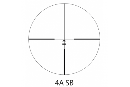 Le modèle 4A-SB est similaire au modèle 4A-S, mais il comporte 5 marqueurs balistiques supplémentaires. Comme ils se trouvent dans le deuxième plan focal, les marqueurs sont calibrés pour un grossissement de 12x et une distance de 100 m. Le marqueur supérieur, le plus court, correspond à une longueur de 9 cm, les marqueurs plus longs à une longueur de 18 cm. En calibre .308 Winchester, réglé à 100 m avec un poids de balle de 10,7 g et un E0 de 820 m/s, il faudra utiliser le deuxième repère pour tirer à 200 m (compensation de 14 cm).